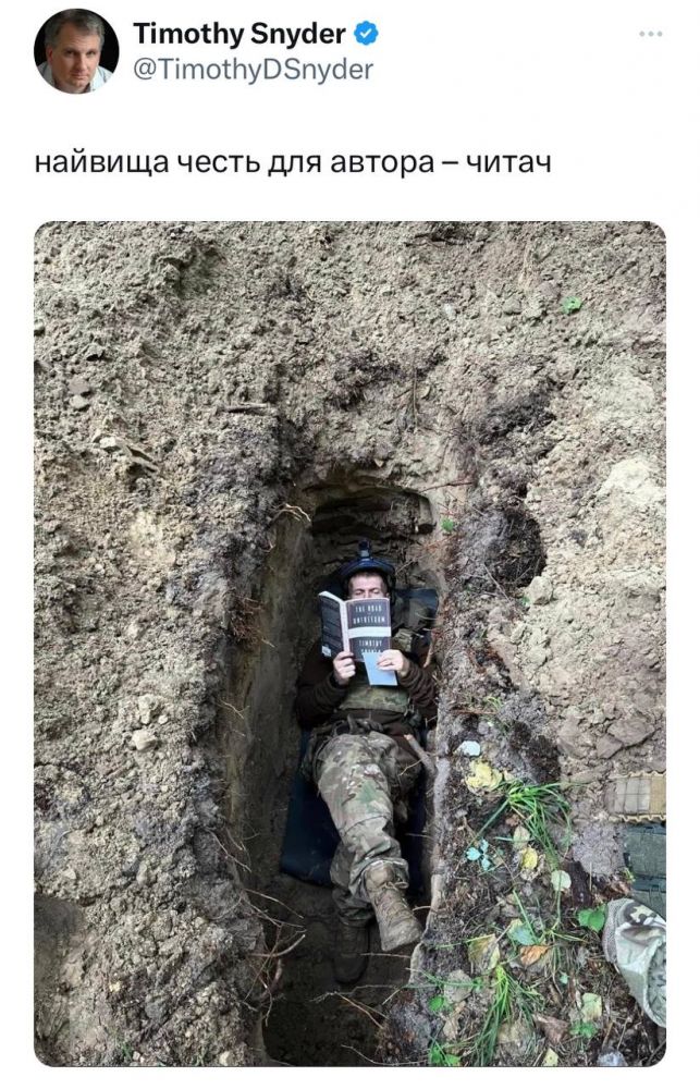 Американський письменник та історик Тімоті Снайдер зустрівся з військовим, який читав його книгу в окопі