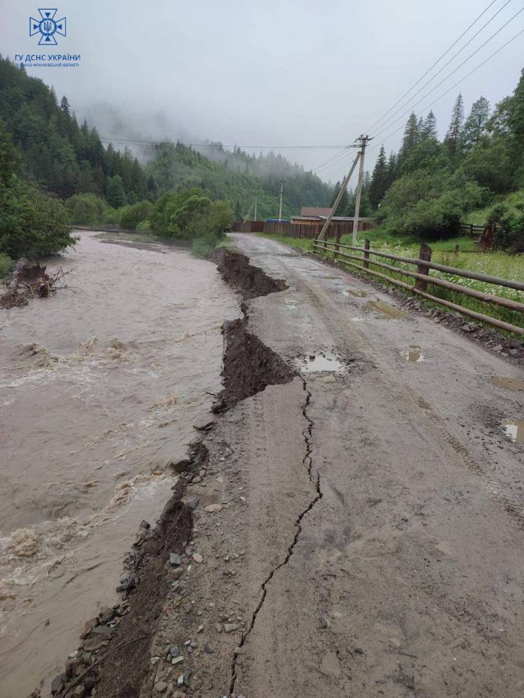 📍Івано-Франківський район - проти ночі 17 червня у Солотвинській ТГ в с. Кричка пошкоджено ділянку дороги на вул. І.Франка, через що був відсутній проїзд до 5-ти житлових будинків.