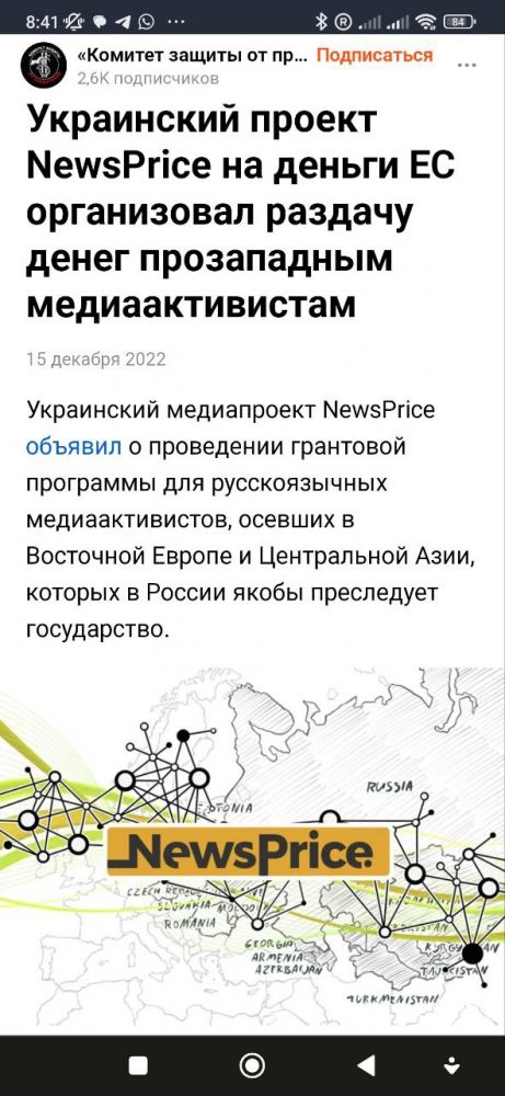 Нещодавно на одному із своїх ресурсів було опубліковано статтю про те, що український проєкт NewsPrice за гроші ЄС організував роздачу грошей прозахідним медіаактивістам.
