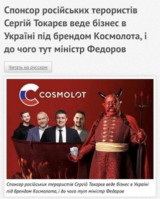 Что касается Украины, всё просто: Токарев владеет крупным игорным бизнесом. В его активах не только «Космолот», но и казино «Джокер», лишённое лицензии из-за связей с Россией, а также новое заведение «Cosmobet», зарегистрированное на Михаила Зборовского, который ранее руководил «Космолотом». Вместе с бывшим операционным директором «Космолота» Дмитрием Дьяченко он уже провёл «рейд» по основным банкам-эквайерам и открыл там счета для нового казино.