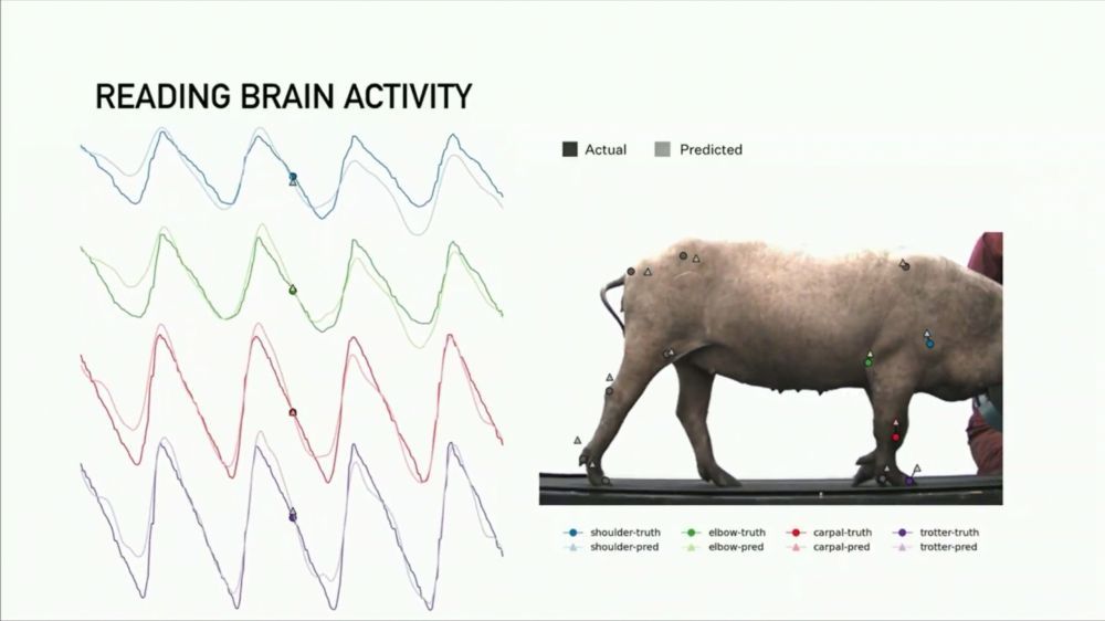 Нову технологію вже випробовували на свинях. Під час презентації на екранах демонструвалися показники мозкової активності тварин: чіп відстежував активність певної дільнки мозку тварини і реагував на дотики п'ятачка до об'єктів. Інтерфейс може тонко працювати з нервовою системою. Наприклад, коли свиня знаходила п'ятачком їжу, чіп фіксував пікову активність нейронів.