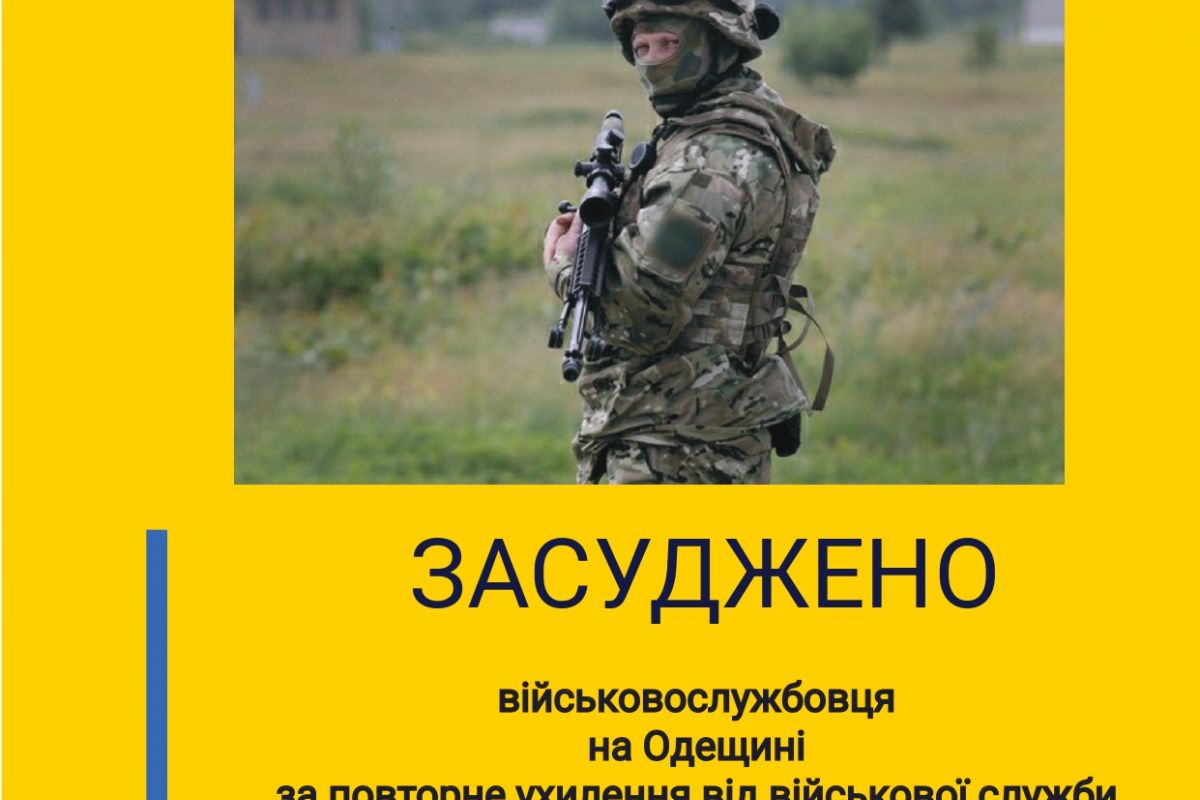 3 роки 1 місяць позбавлення волі ‒ за повторне ухилення від служби: на Одещині засуджено військовослужбовця