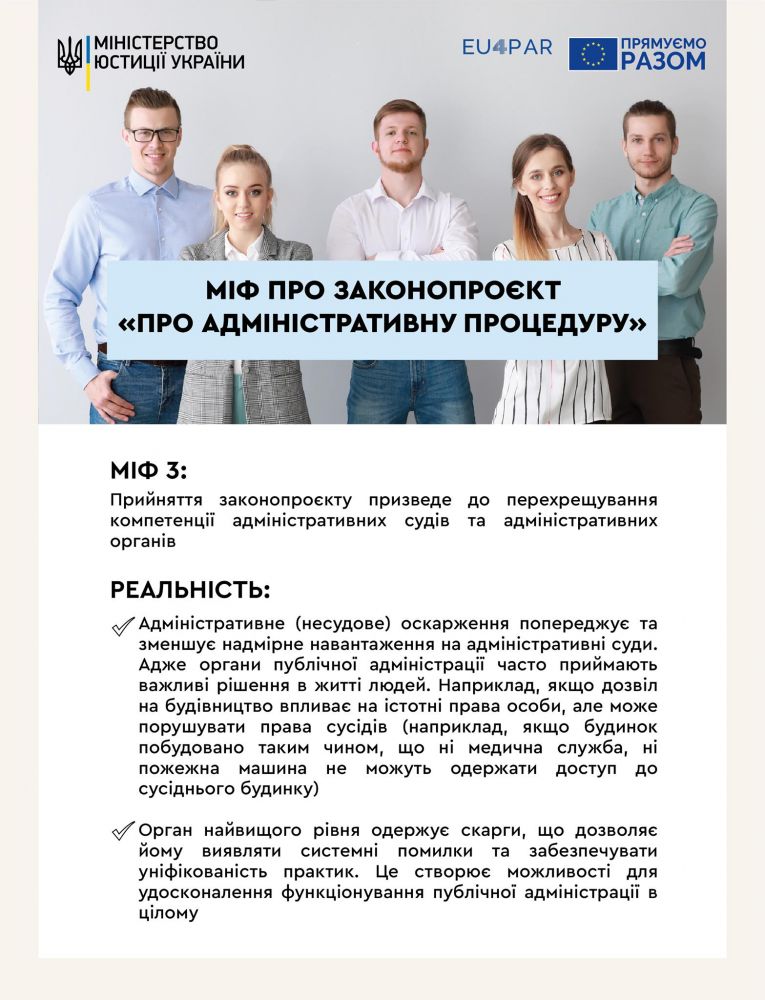 Міф №2: Іноді можна почути таку думку: "Навіщо ухвалювати закон про адміністративну процедуру, якщо вона в Україні вже існує?" Насправді ж це не так.