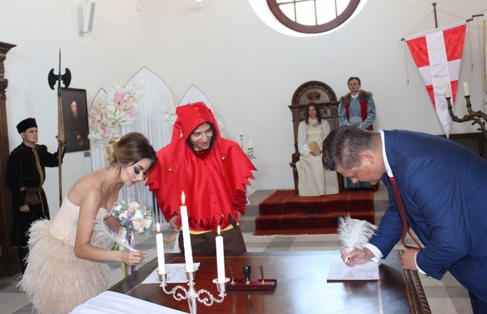 Під час урочистої та неймовірно атмосферної церемонії реєстрації шлюбу закохані окрім подарунків, отримали з рук самого князя шлюбний лист, завірений його особистою печаткою та підписом.